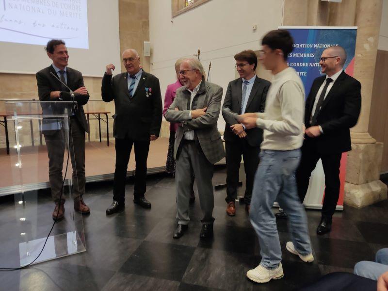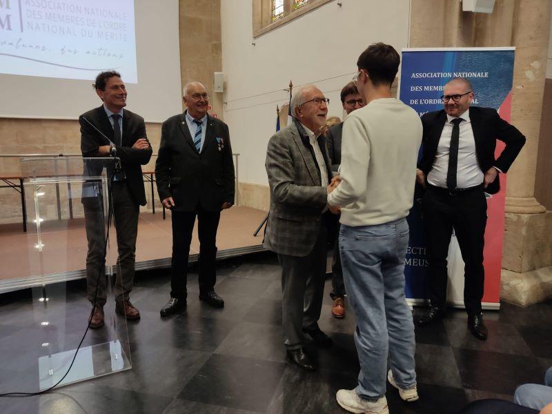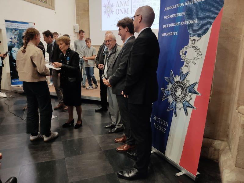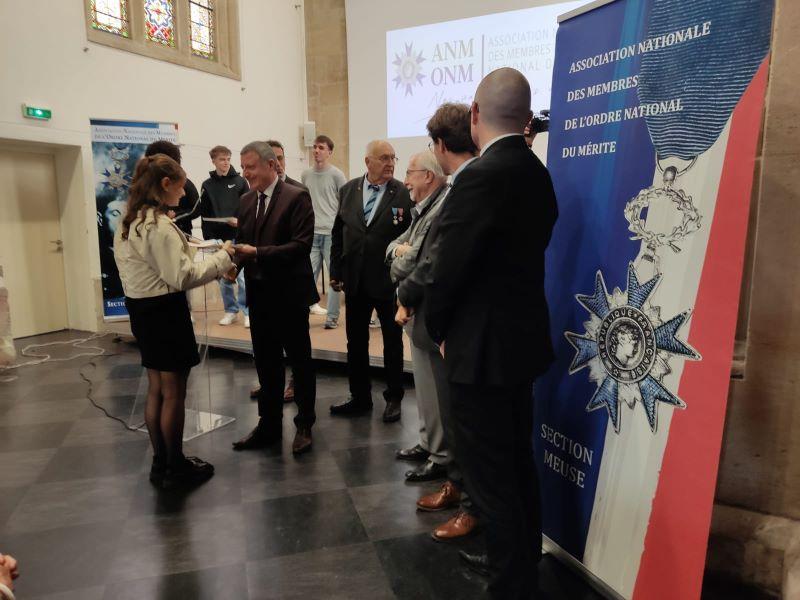 C'est pour cette action que l'ANMONM Meuse décerne ce 11 octobre le prix départemental du civisme à cette classe de 1ère, avec ses félicitations pour cet engagement altruiste et bénévole, comme le souligne le président, M. GAVARD, en s'adressant au Proviseur, aux personnalités présentes et aux élèves.